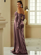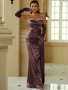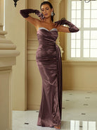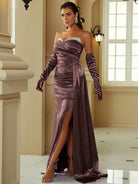 Strapless Slit Satin Formal Dress With Gloves XH2211