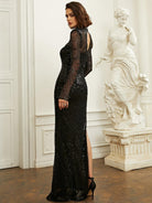 Luxurious Black Sequin Split Cocktail Dress XJ1722