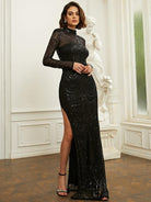 Shine on the dance floor in our Luxurious Black Sequin Split Prom Dress. Made with high-quality sequin fabric, our dress adds a touch of glam to your evening. The daring split adds a flirty element, making you the center of attention. Get ready to dazzle in this must-have dress!