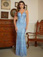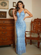 V-neck Sleeveless Sequin Maxi Dress XH1589
