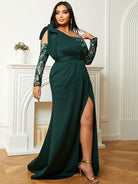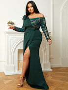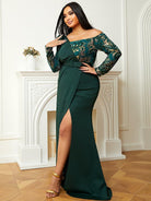 Plus Off Shoulder Emerald Green Gown PJM019L