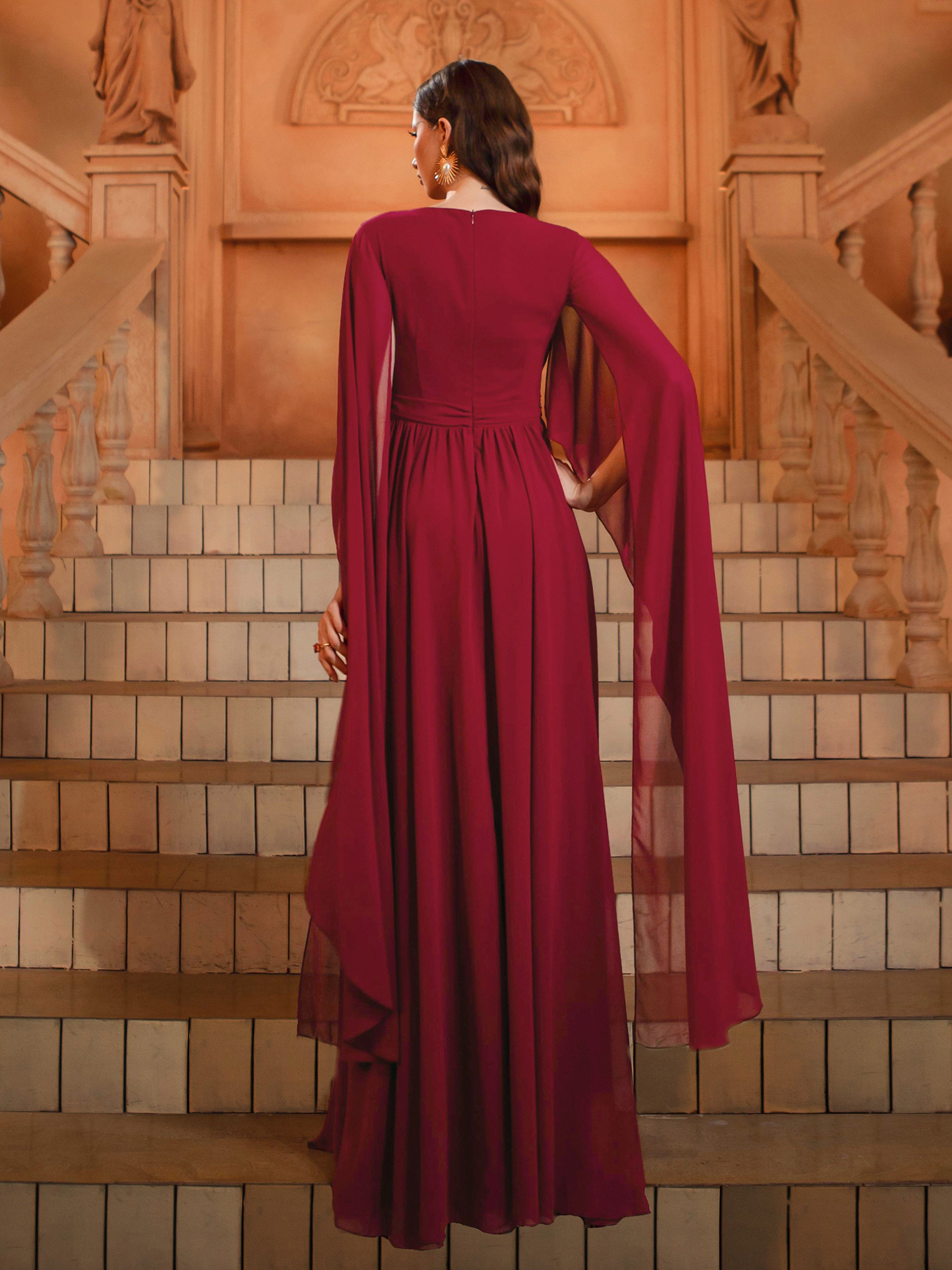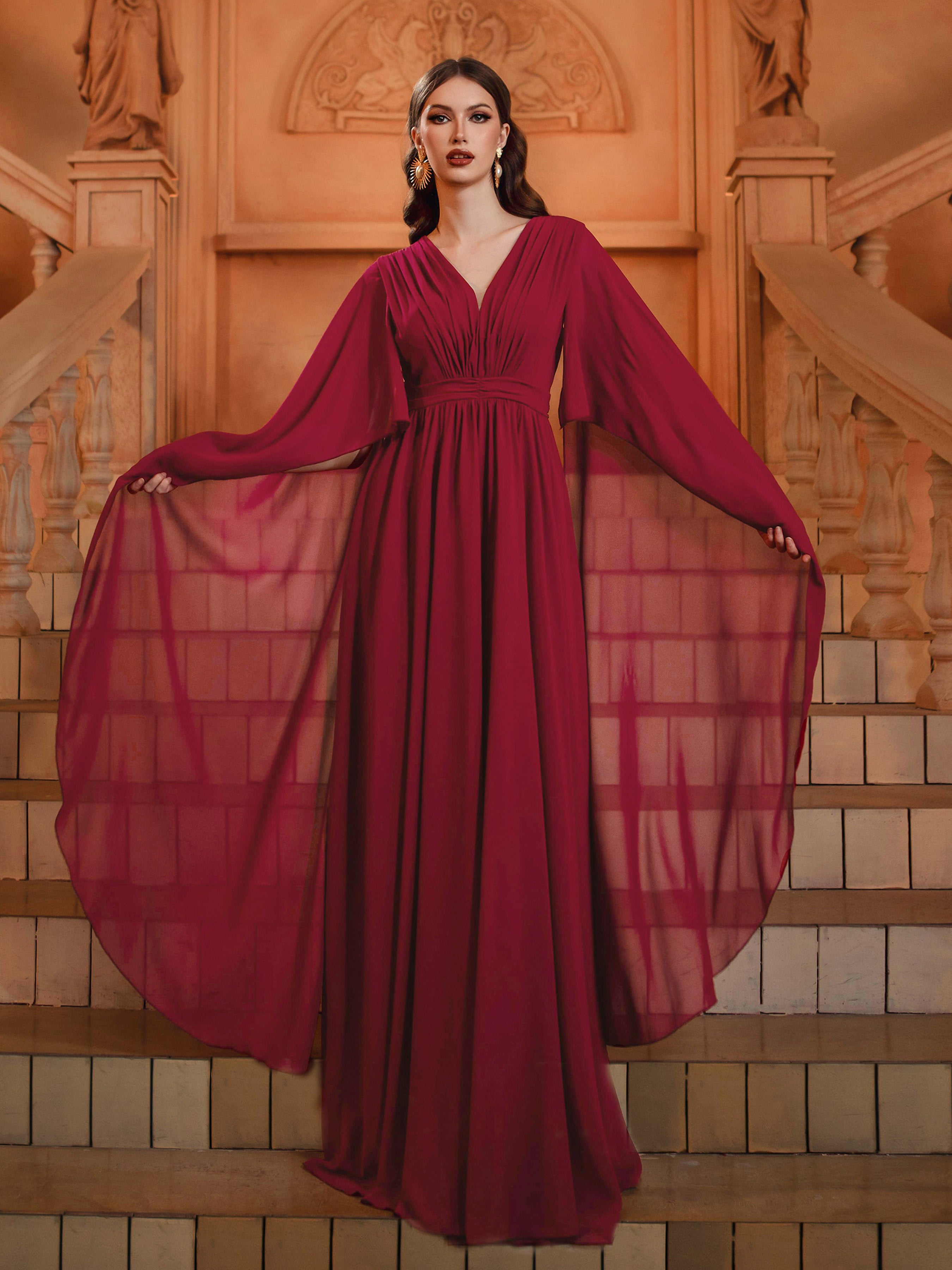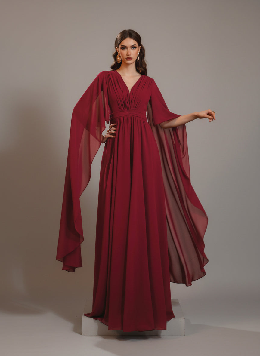 Wine Cape Sleeve V-neck Prom Dress GM00786
