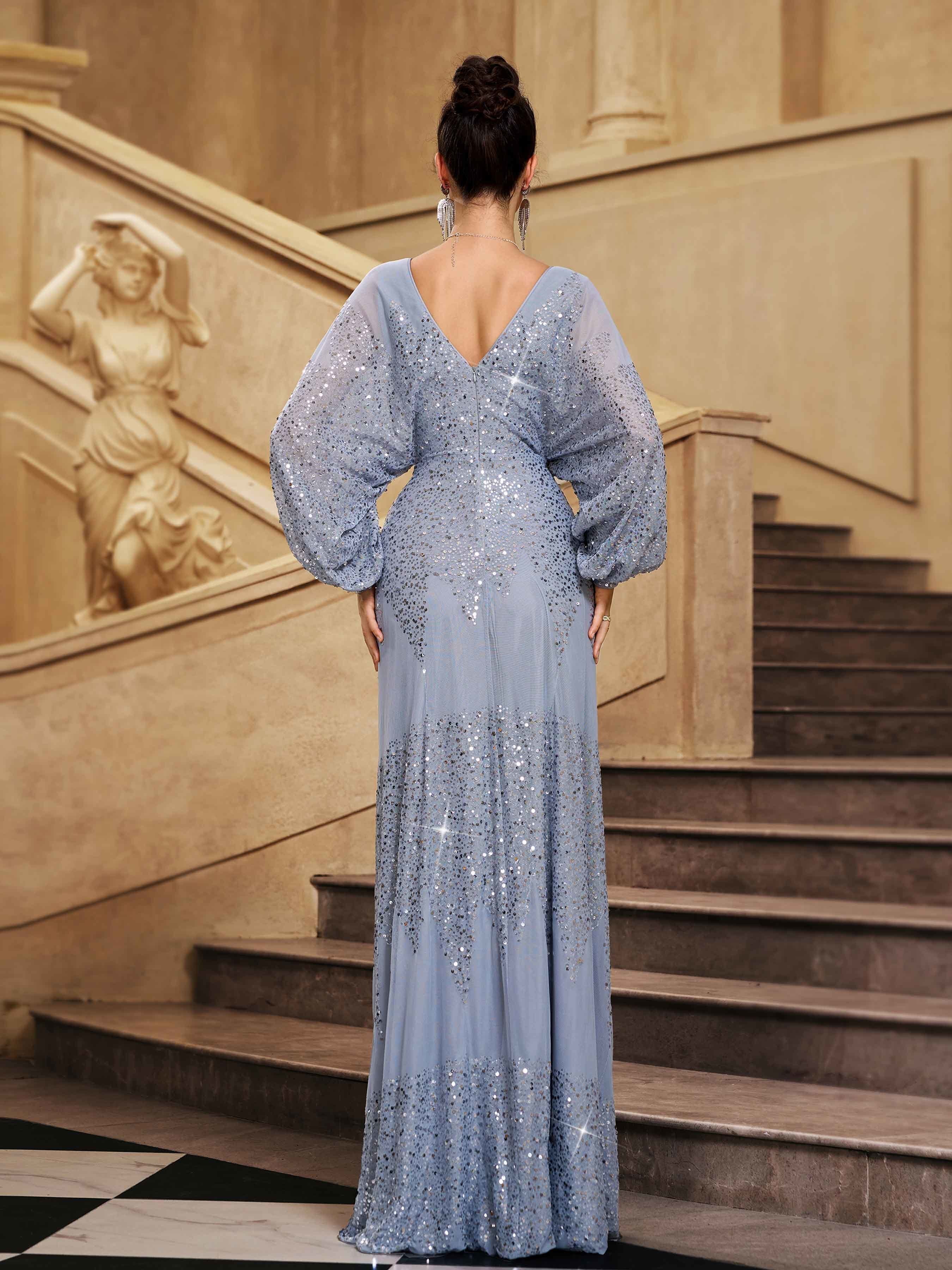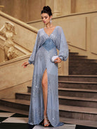 Grey Sequin Loose Split A-line Prom Dress RM21107