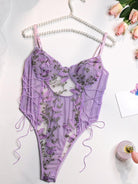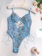 Introducing our elegant Lace Up Butterfly Embroidery Teddy. Featuring intricate butterfly embroidery and a lace-up design, this teddy is perfect for adding a touch of Romance to your lingerie collection. The delicate lace and figure-flattering silhouette make this teddy a must-have for any special occasion.