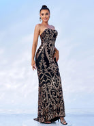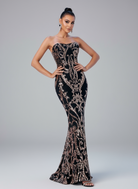 This zip-back damask black maxi dress is a versatile item, suitable for any special event. It features an off-shoulder silhouette, with sleeveless armholes and a regular fit.