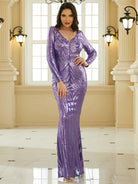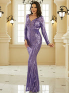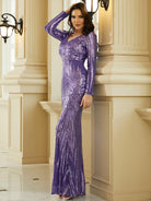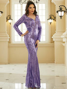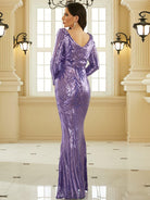 Formal Long Sleeve Sequin Purple Evening Dress XJ1573