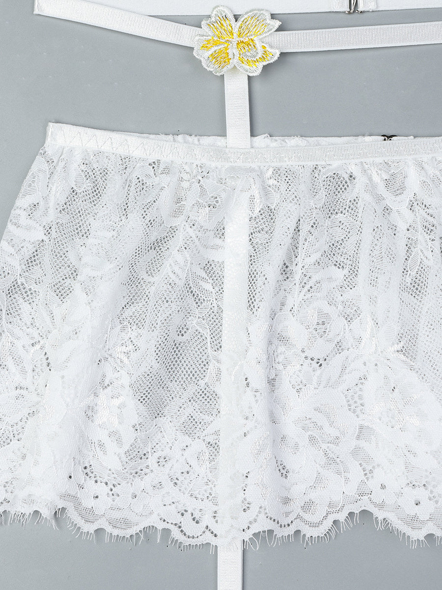 White Lace Embroidered Flower Sexy Lingerie Set MSL086