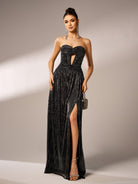 Corset Strapless Split Plain Maxi Dress DH80174