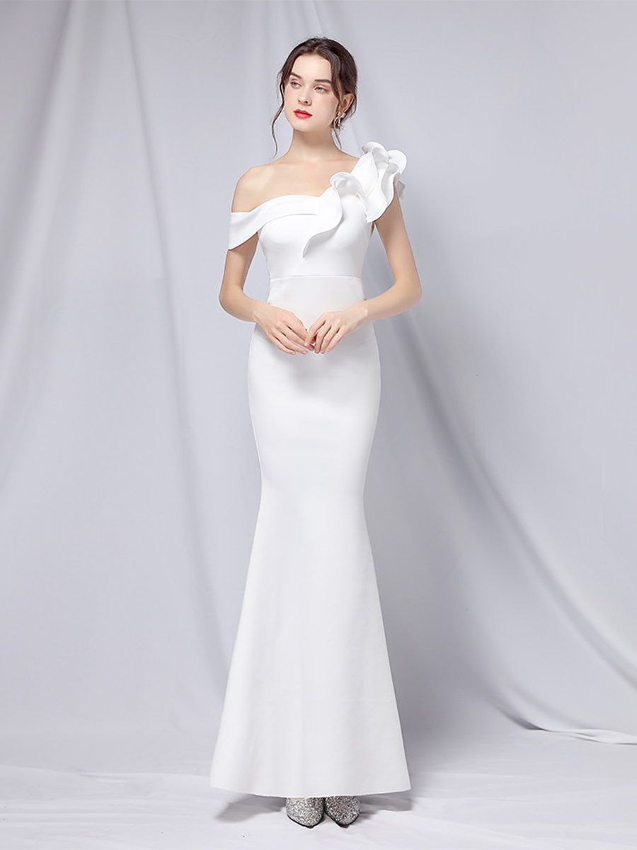 One Shoulder Ruffled Mermaid Elegant Bridal Dress M01947