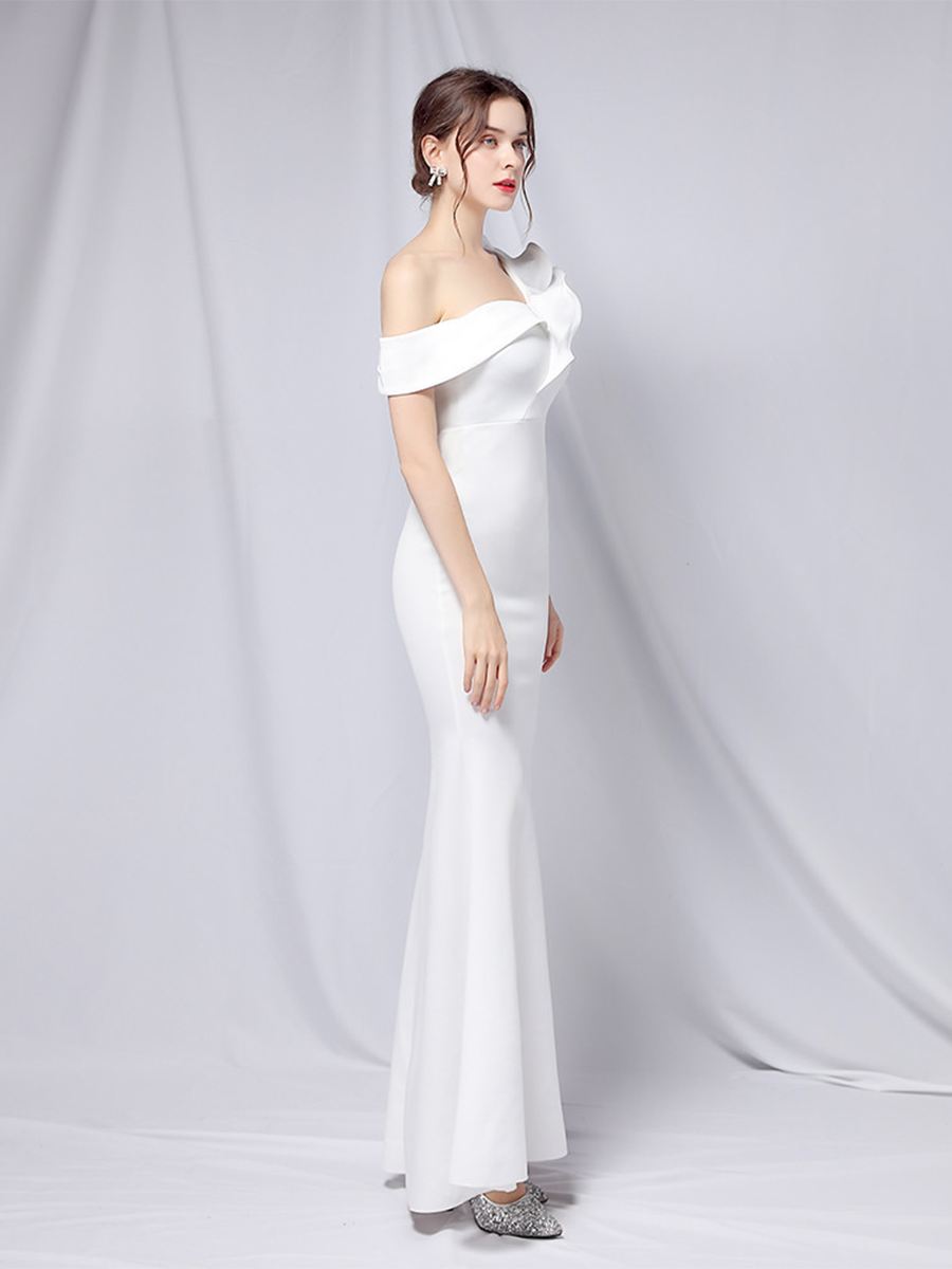 Turn heads with this Elegant One-Shoulder Ruffle Mermaid Evening Gown. Its sleek mermaid silhouette accentuates your curves, while the dramatic one-shoulder ruffle adds a touch of sophistication and flair. Perfect for formal events, this gown combines timeless elegance with modern design to ensure you make a memorable entrance.