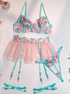 Featuring an embroidered mesh tutu skirt, this 4 pieces lingerie set is perfect for a sexy night of fun. The soft, romantic fabric is sure to make you feel like a goddess.
