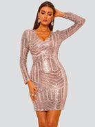Glitzerndes, figurbetontes Kleid mit V-Ausschnitt FT2561