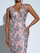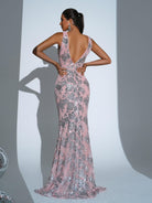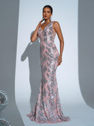 V-neck Floral Sequin Mermaid Dress RJ11513