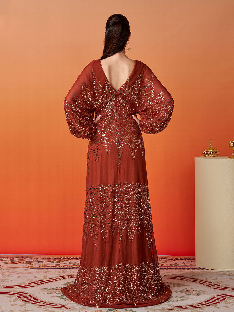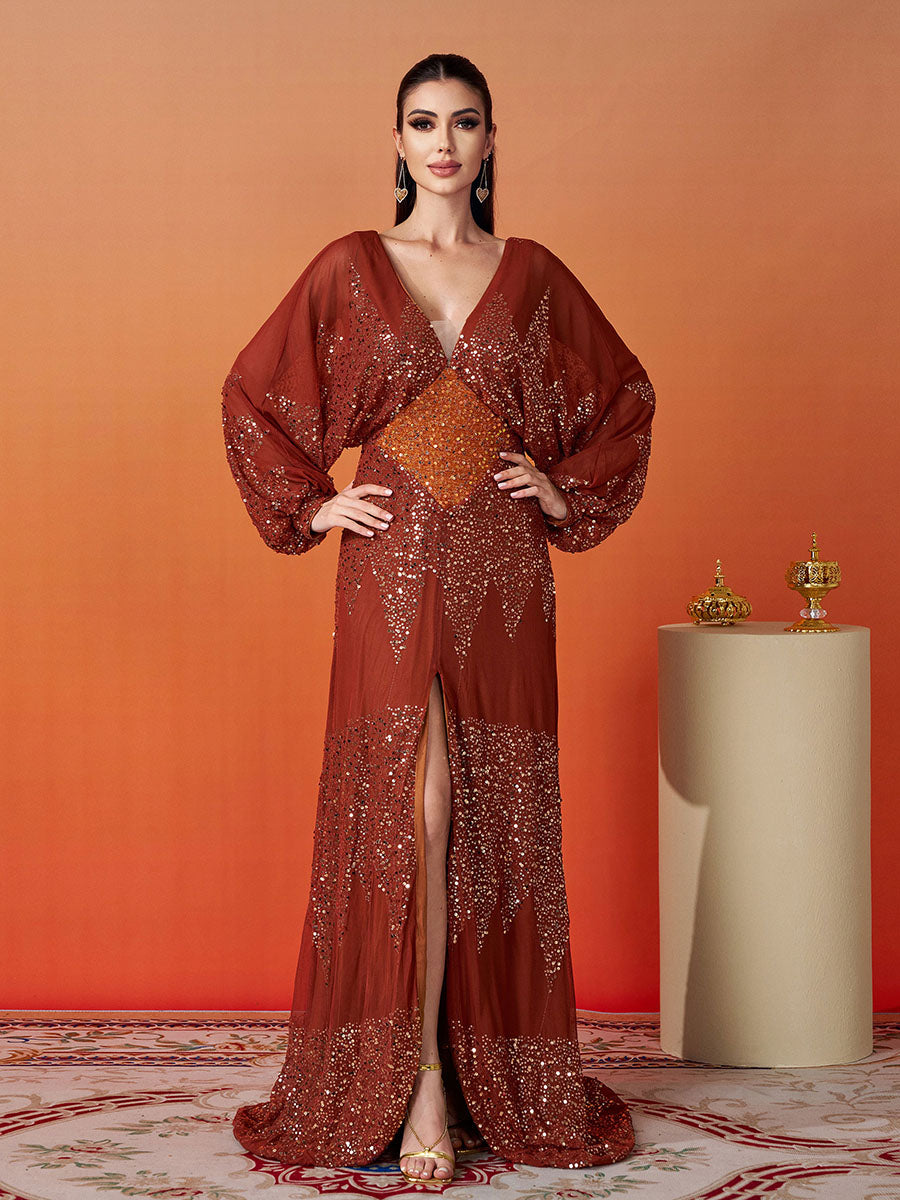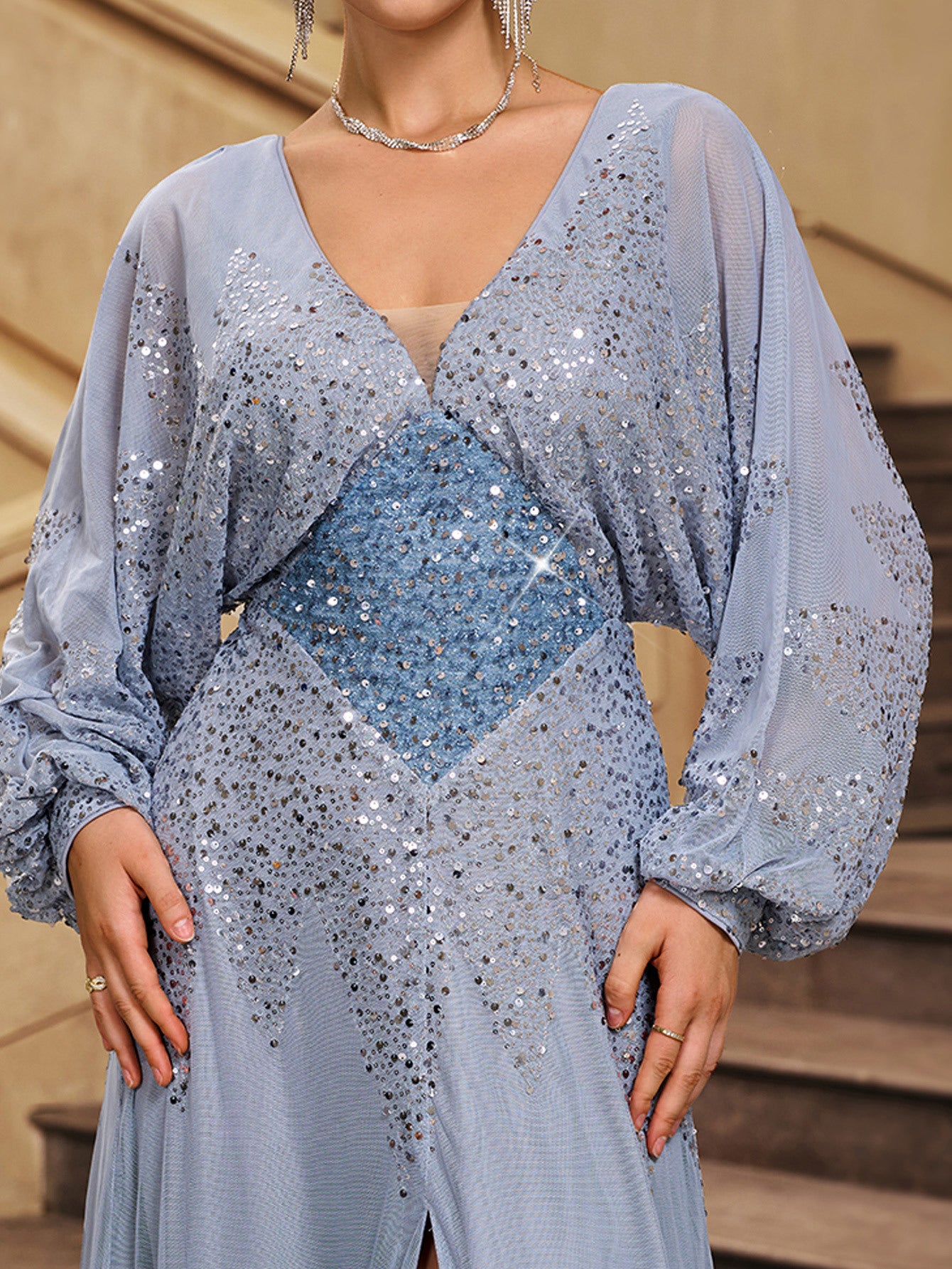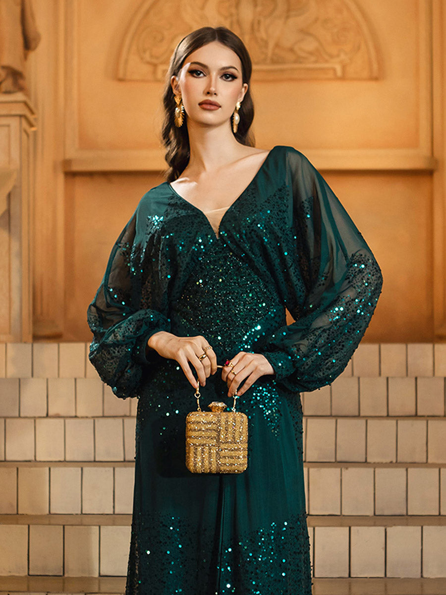 Dazzle in this Lantern Sleeve V-Neck High Split Prom Dress! With its elegant lantern sleeves and alluring high split, you'll turn heads all night long. The V-neckline adds a touch of sophistication while the sleek black color is both timeless and versatile. Elevate your prom experience with this stunning dress.