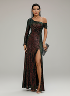 - Detail: Glitter, Ruched, One Shoulder,Split Thigh