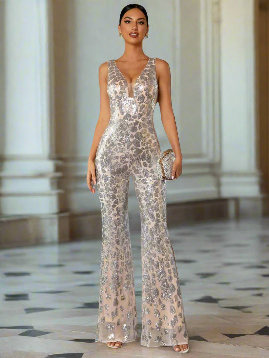 Sleeveless Cutout Sequin Jumpsuits RH30063