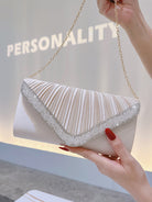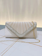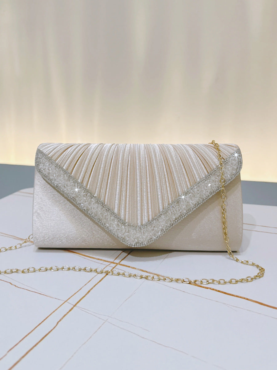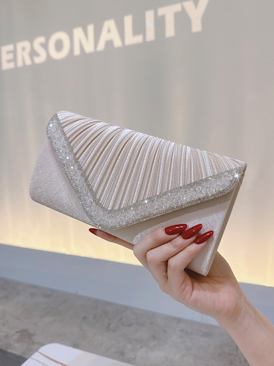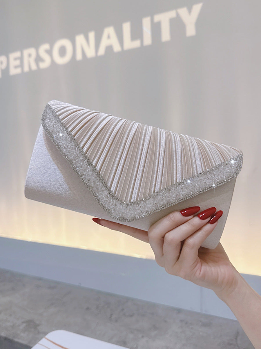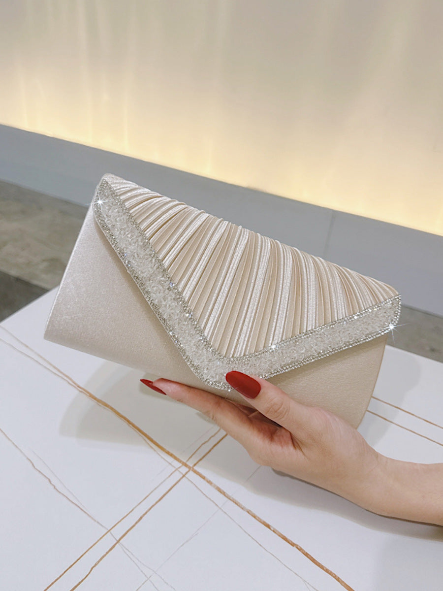 Beige Pleated Satin Rhinestone Clutch MNBF124