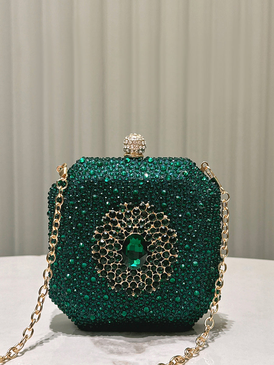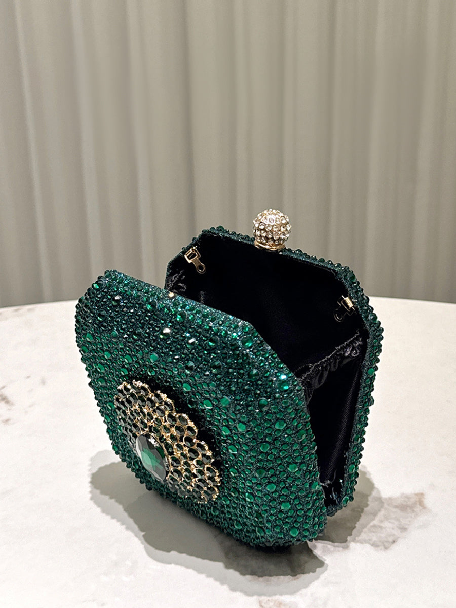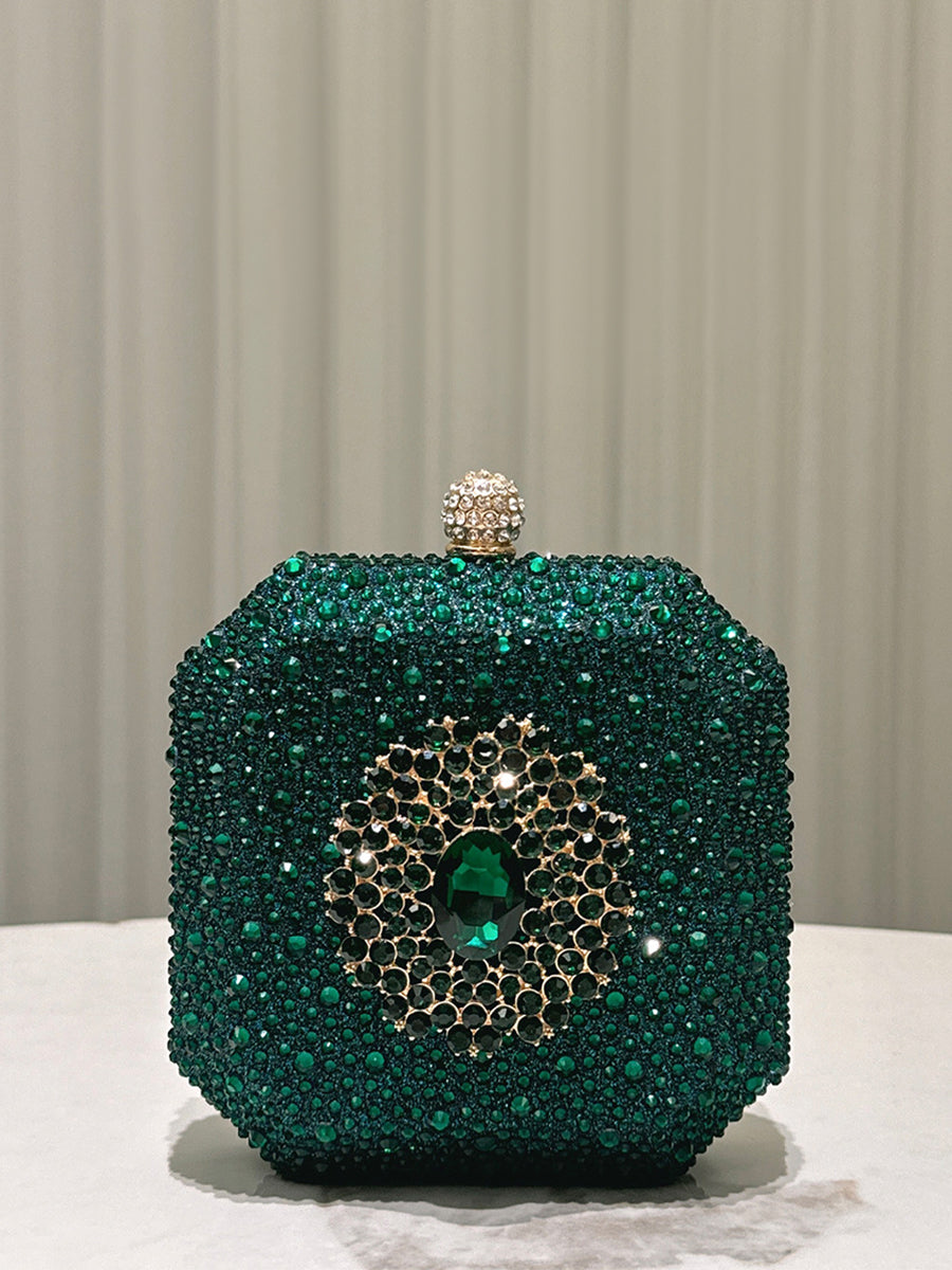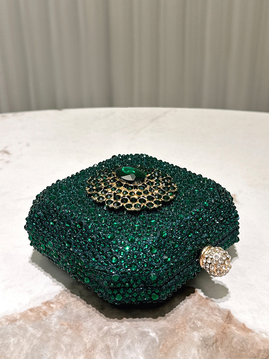 Emerald Green Rhinestone Statement Clutch Bag MNBF120