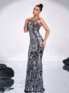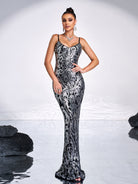 Spaghetti V-neck Sequin Mermaid Cocktail Dress M0808