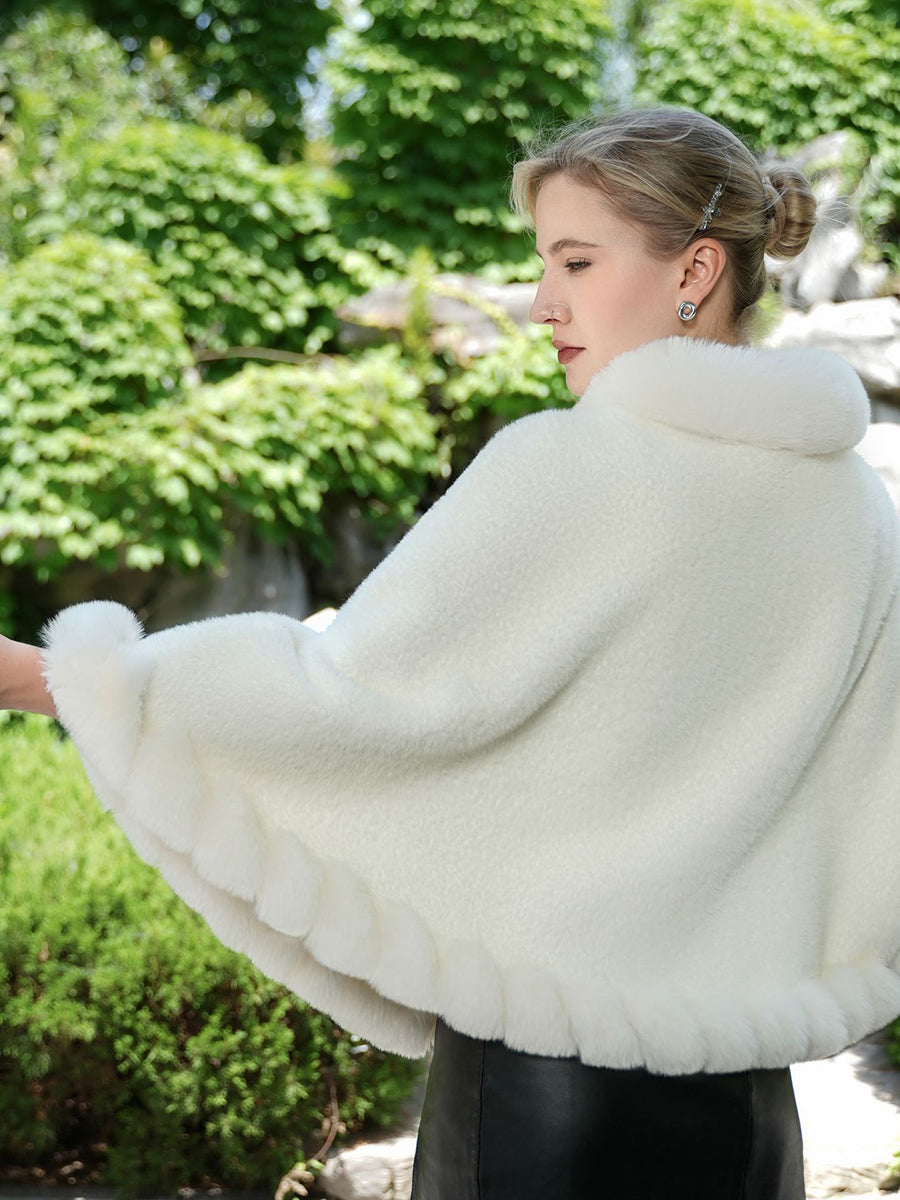 Short Elegant Faux Fur Trim Knitted Poncho Shawl MSF040