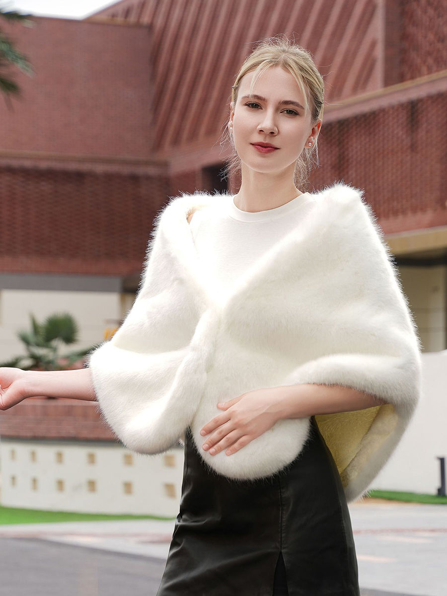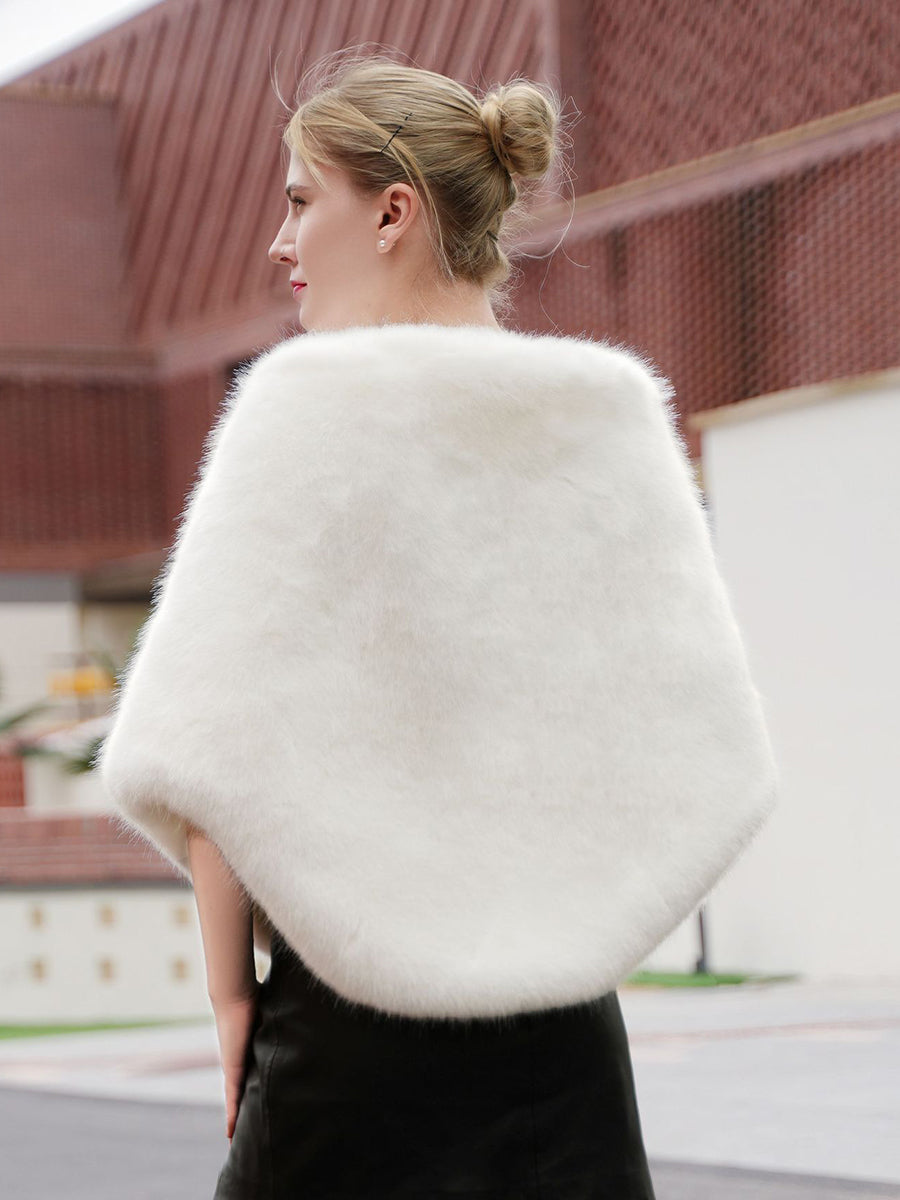 White Short Faux Fur Knitted Poncho Shawl MSF041