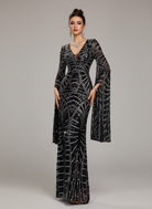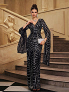 Black Geometric Sequin Bell Sleeve Evening Dress GM010124