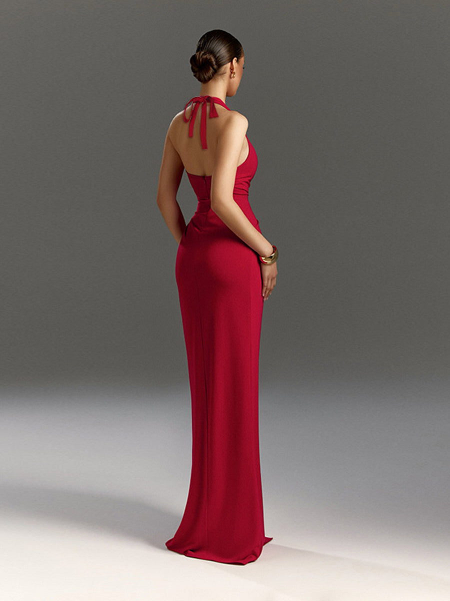 Sexy Halter Ruched Slit Cocktail Dress XF05774