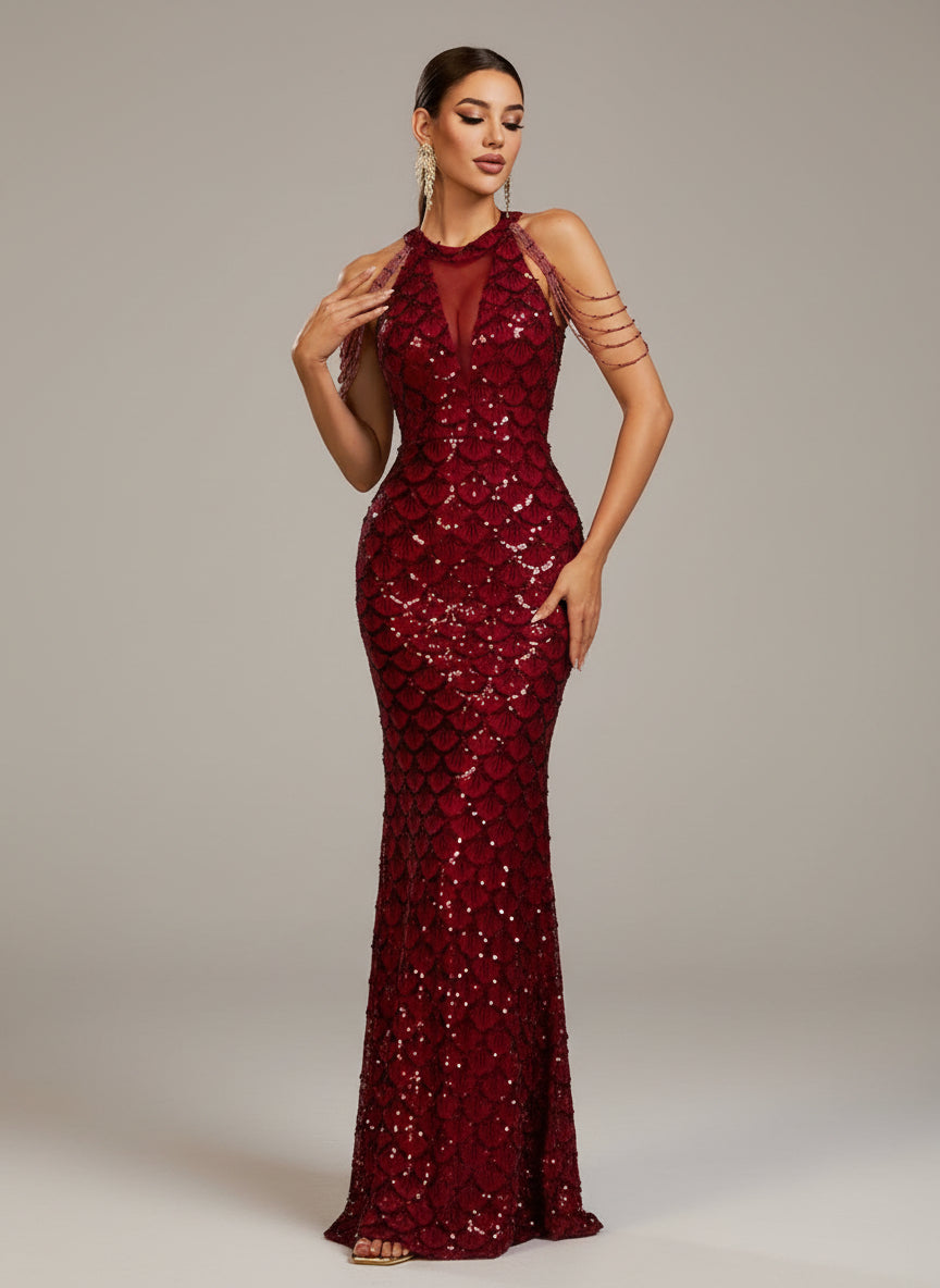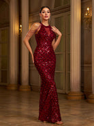 Turn heads at your next event with this wine sequin mermaid cocktail dress. Its shimmering sequins catch the light beautifully, while the elegant mermaid silhouette highlights your curves for a stunning look. Perfect for cocktail parties or special occasions, this dress combines playful sparkle with sophisticated style.