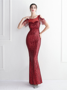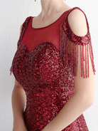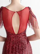 Cold Shoulder Fringed Sequin Black Evening Dress M02166