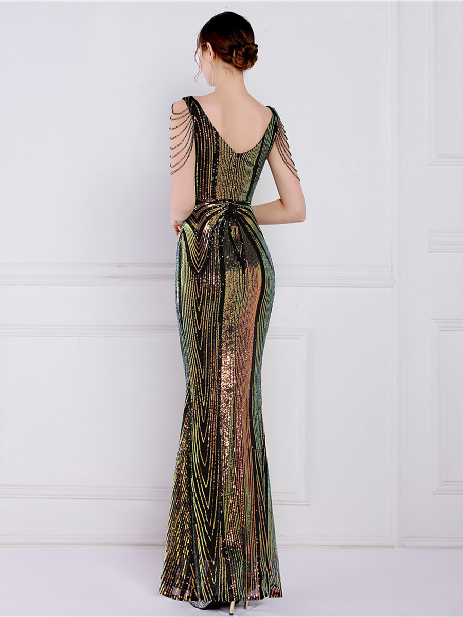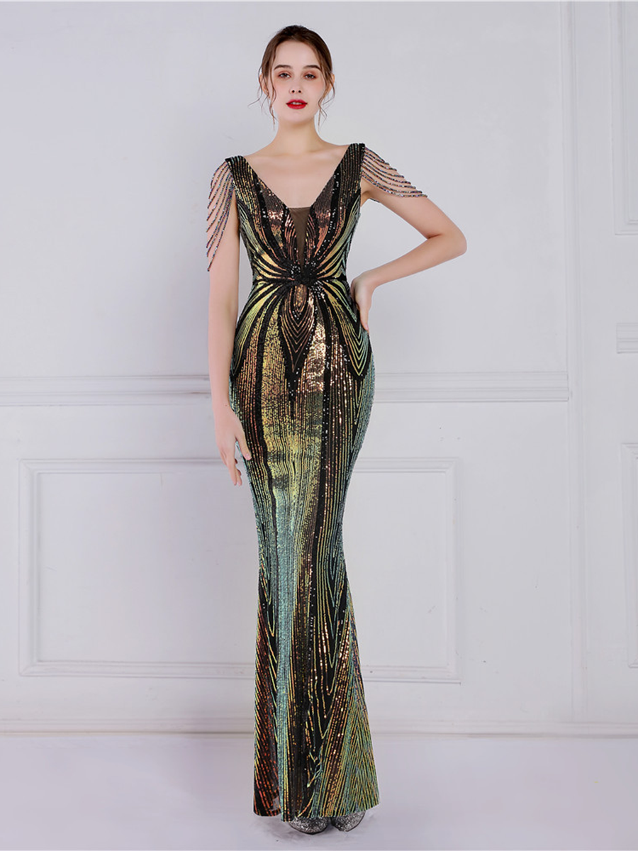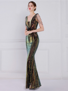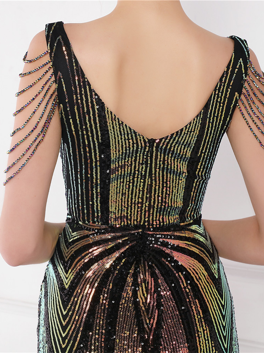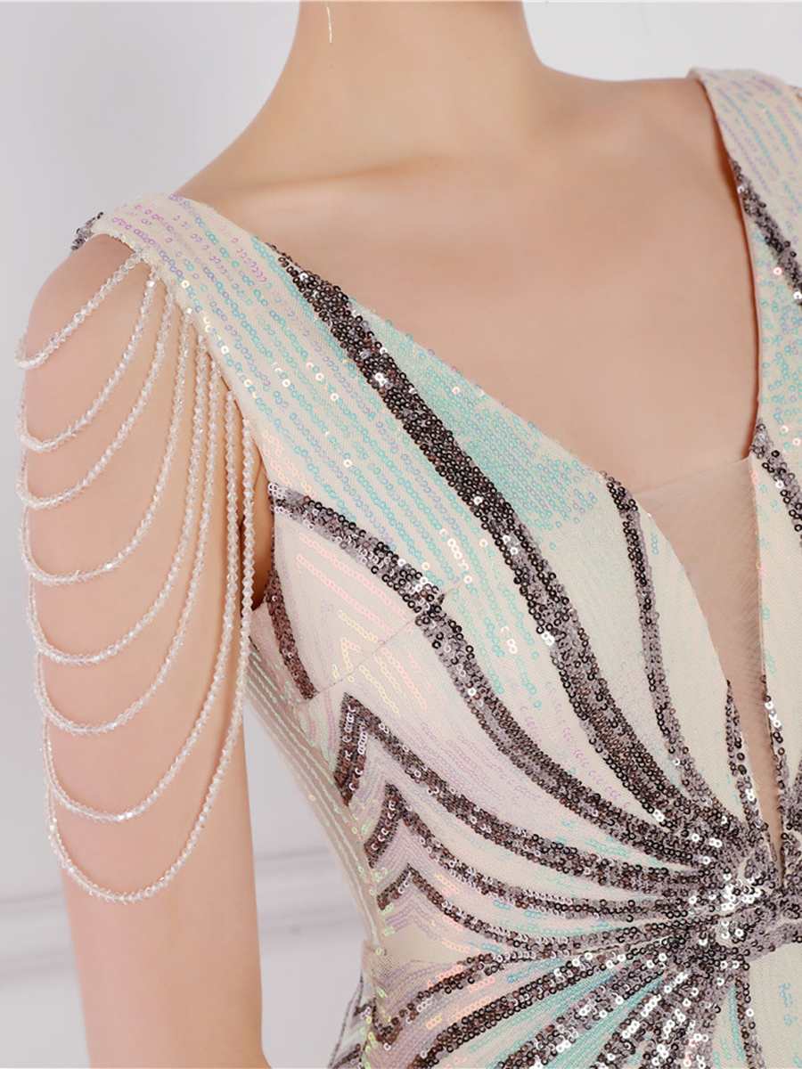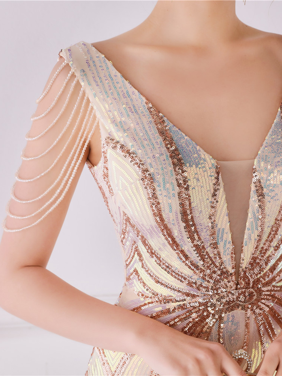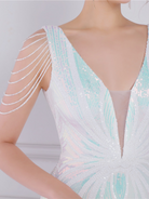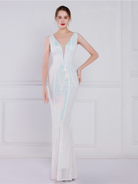 V Neck Elegant Multicolor Maxi Sequin Prom Dress M02092