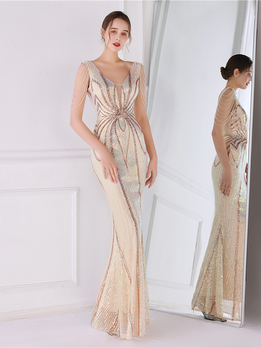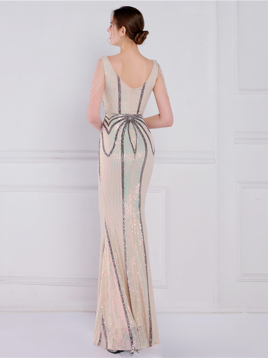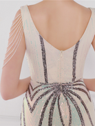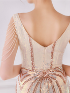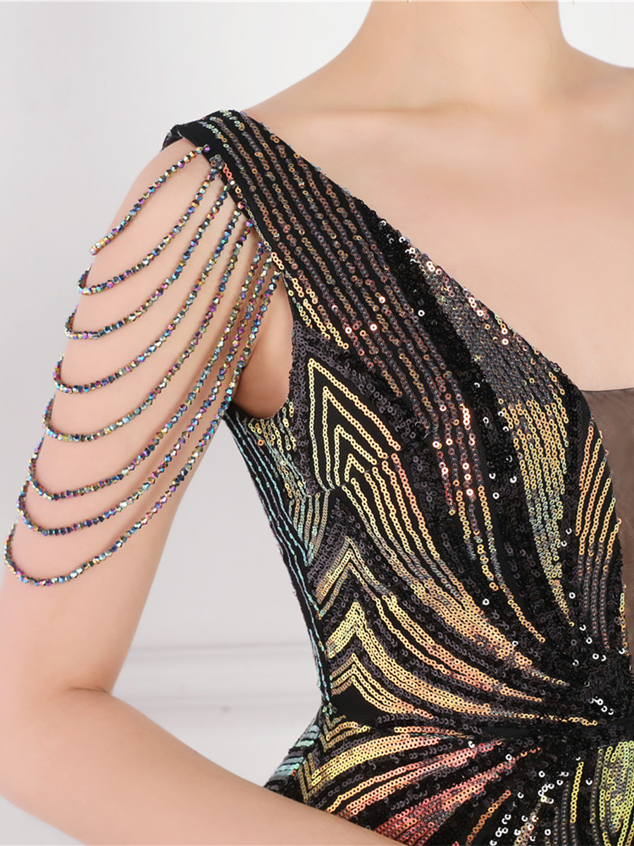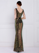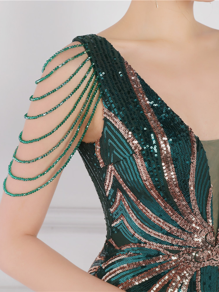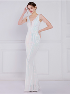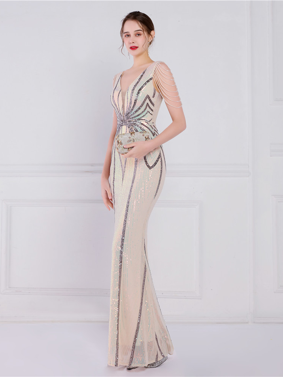 V Neck Elegant Multicolor Maxi Sequin Prom Dress M02092