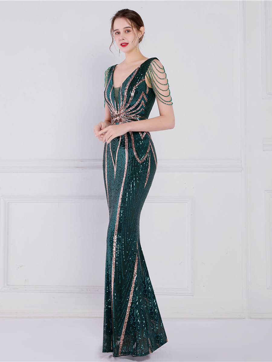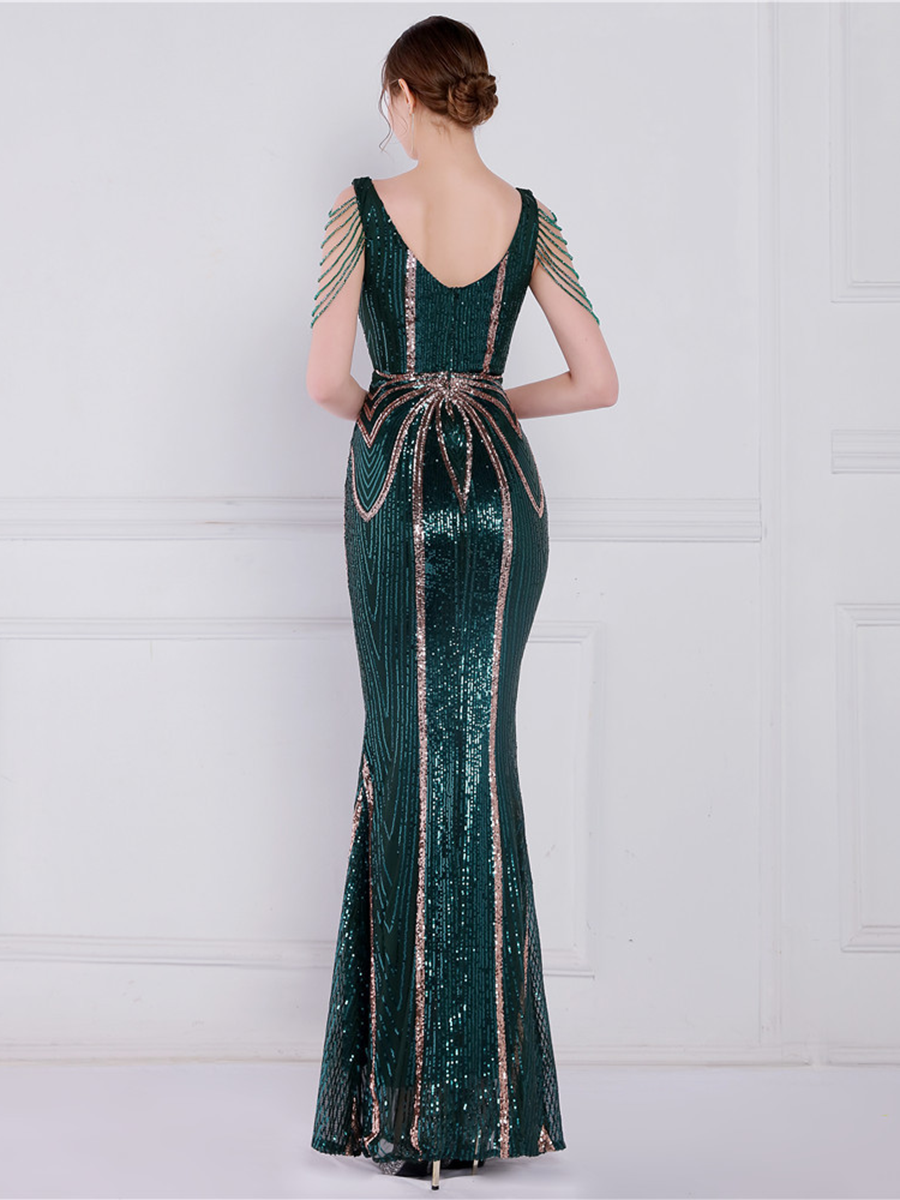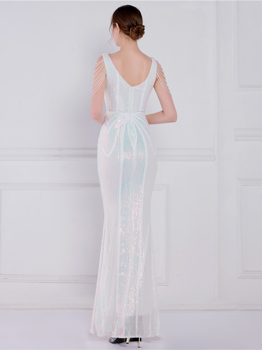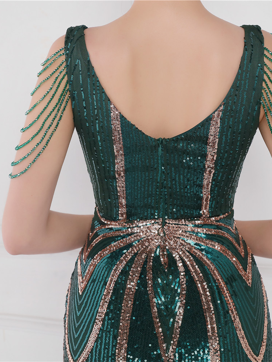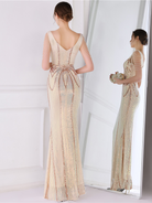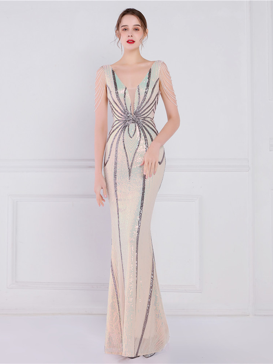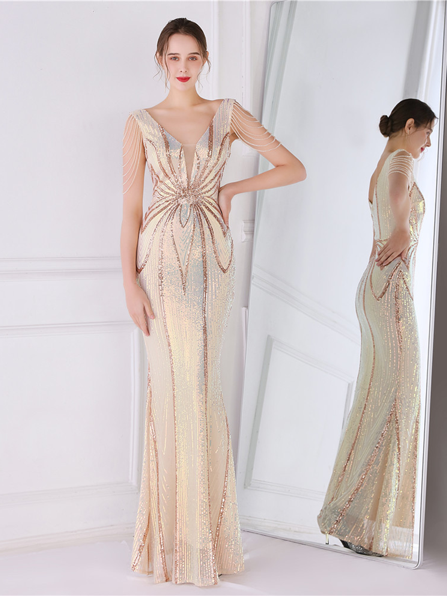 V Neck Elegant Multicolor Maxi Sequin Prom Dress M02092