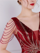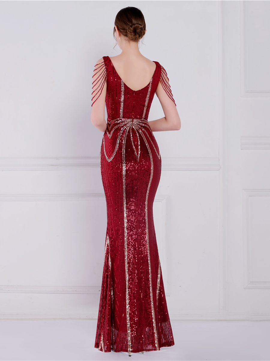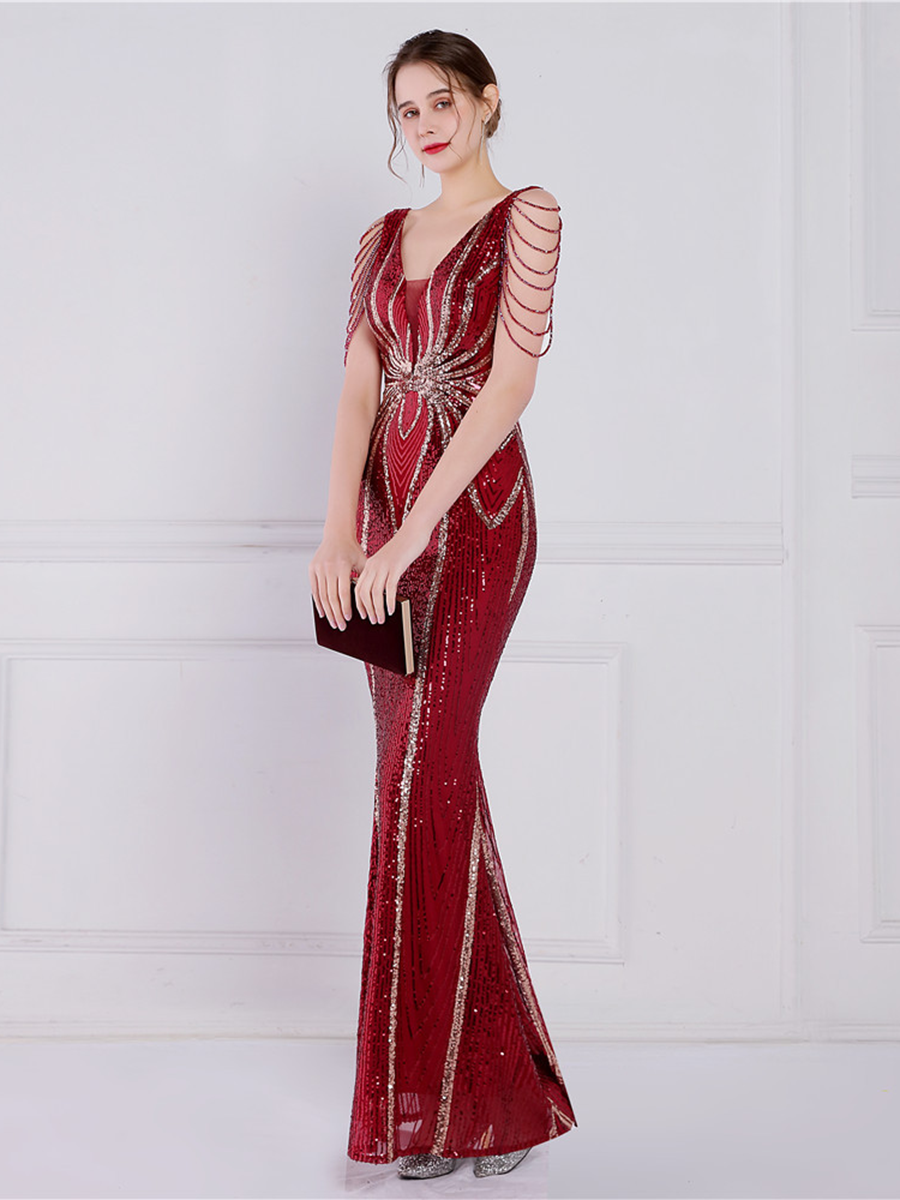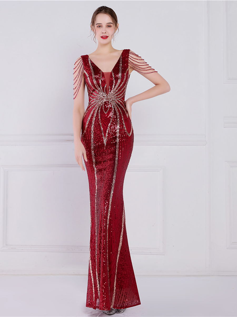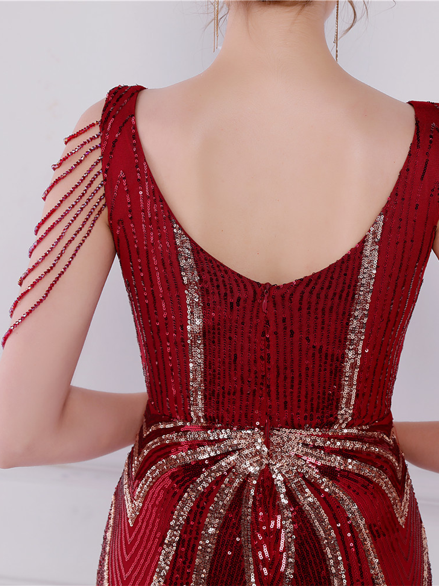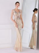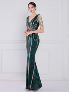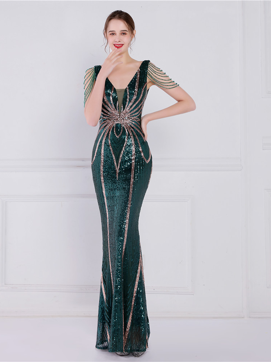 V Neck Elegant Multicolor Maxi Sequin Prom Dress M02092