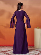 Purple Embroidered Flared Sleeve Maxi Dress MES72133