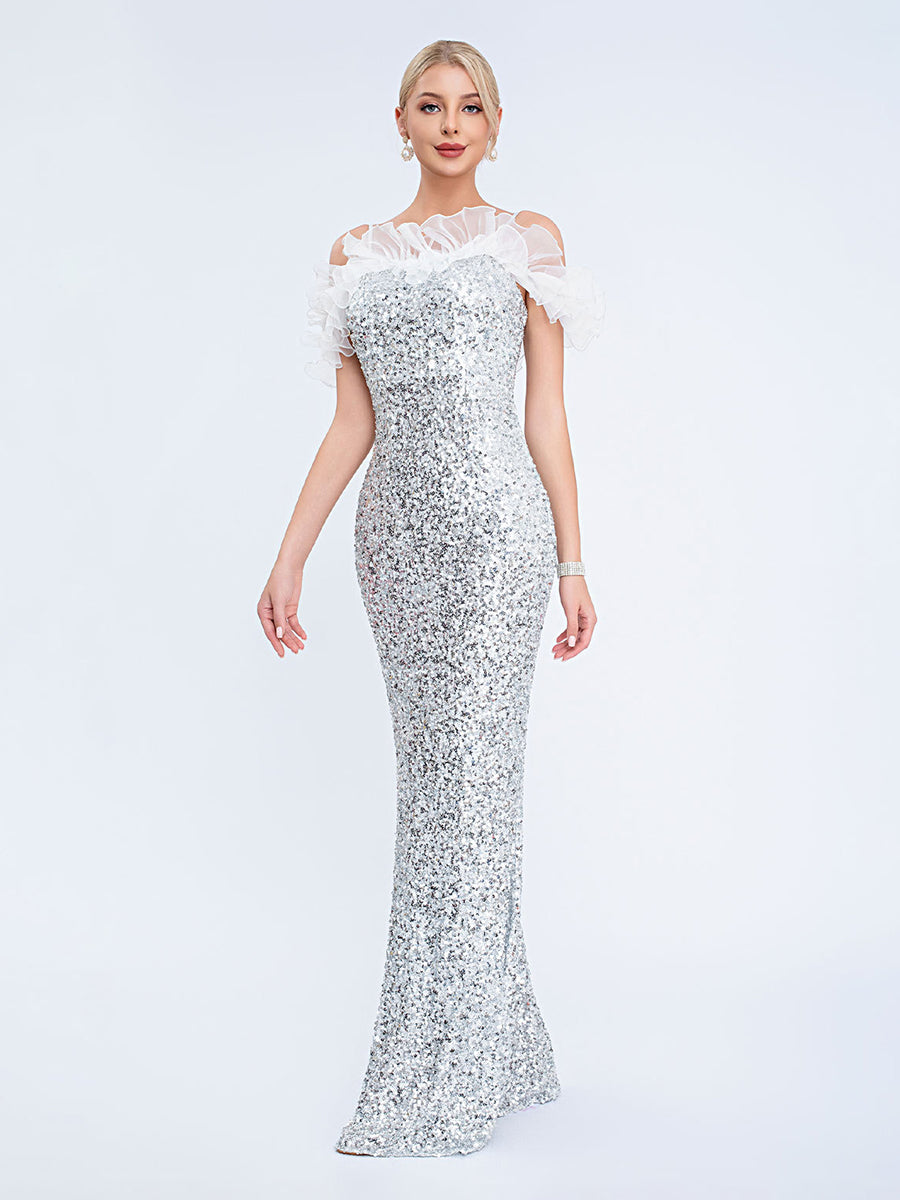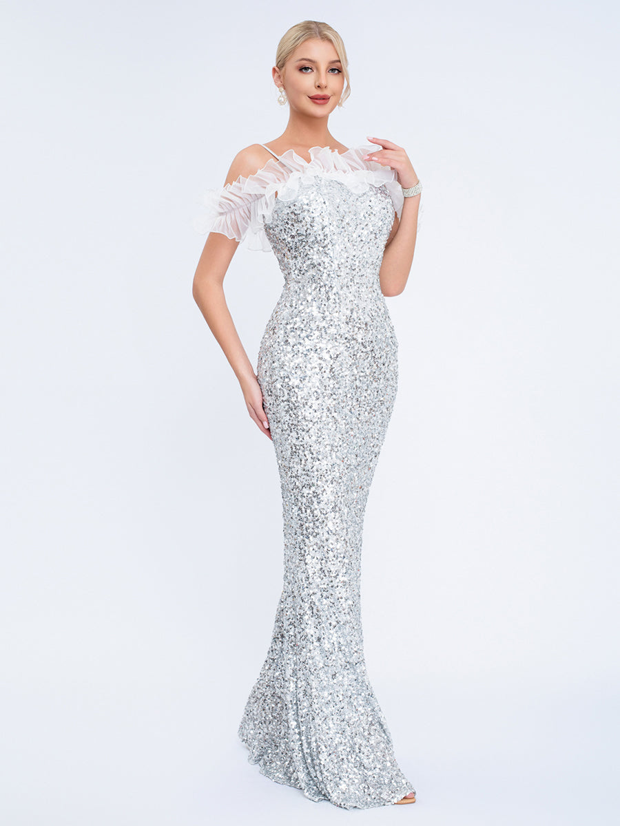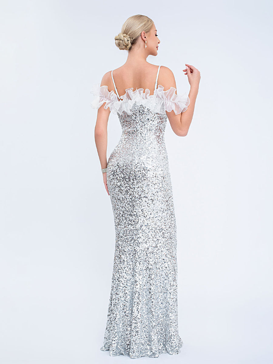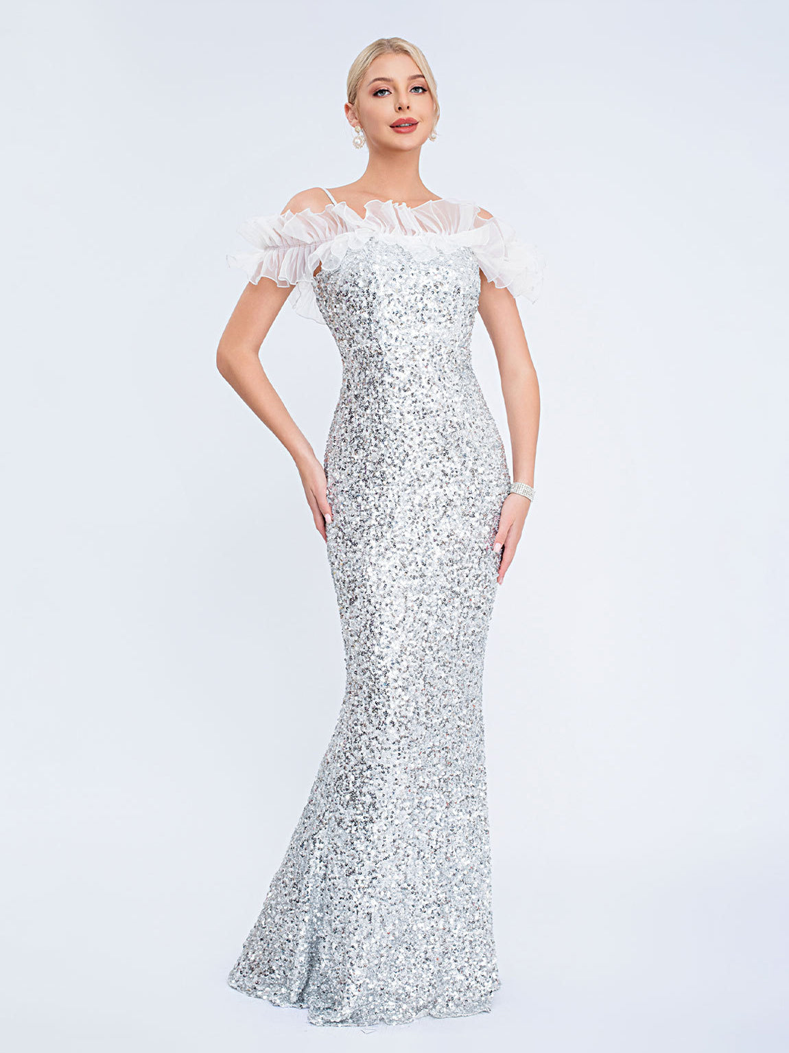 Silver Sequin Off Shoulder Mermaid Evening Dress XF251281