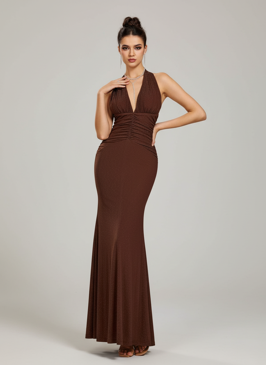 Brown Halter Sexy Mermaid Prom Dress ST59027