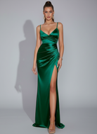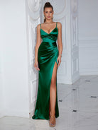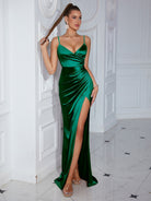Sexy Satin Spaghetti Ruched Maxi Cocktail Dress XF250120
