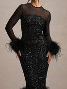 Black Feather Bodycon Sequin Cocktail Dress XF251198