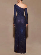 Navy See-through Sequin Long Sleeve Dress XF251196