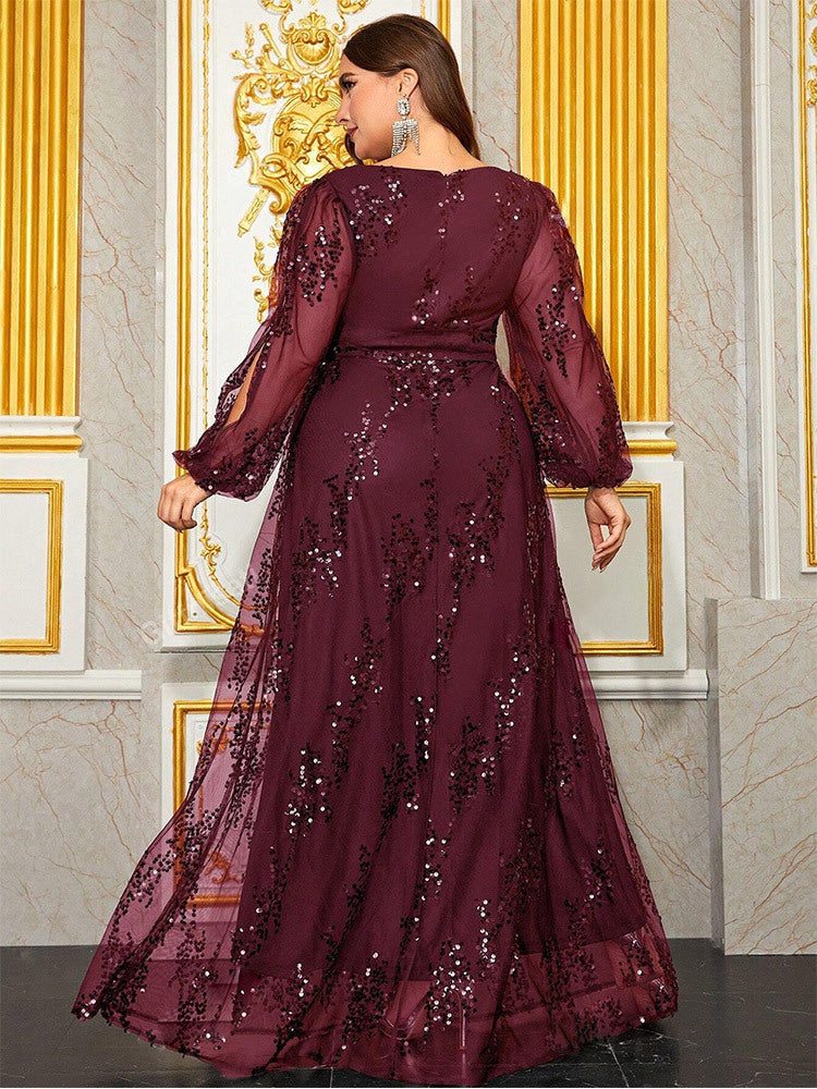 Plus Cutout Sequin A-line Prom Dress MYC2042