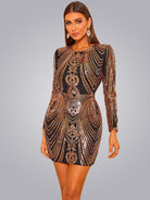 This classic mini dress boasts a timeless silhouette and features a sequined design for a vintage-inspired look. The long-sleeved cut ensures a formal and elegant appearance.