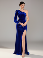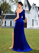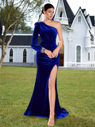 Royal Blue Velvet One Shoulder Prom Dress XF250127