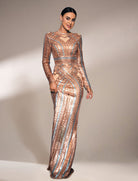 Backless Crew Neck Rosegold Sequin Dress RJ10456