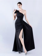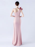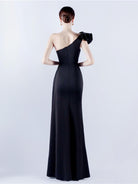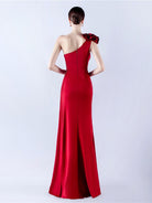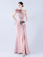 One Shoulder Flower Pleated Draped Prom Dress MYN1002