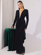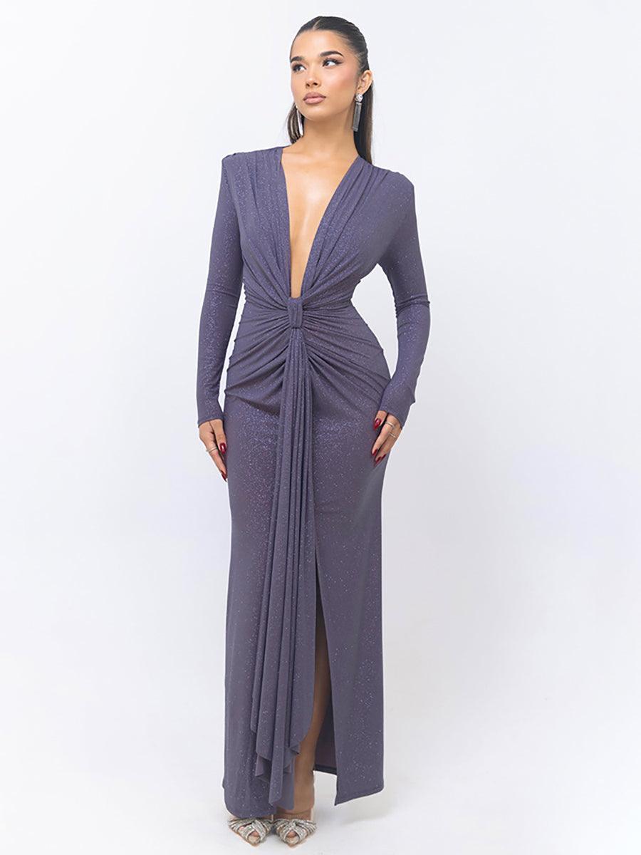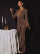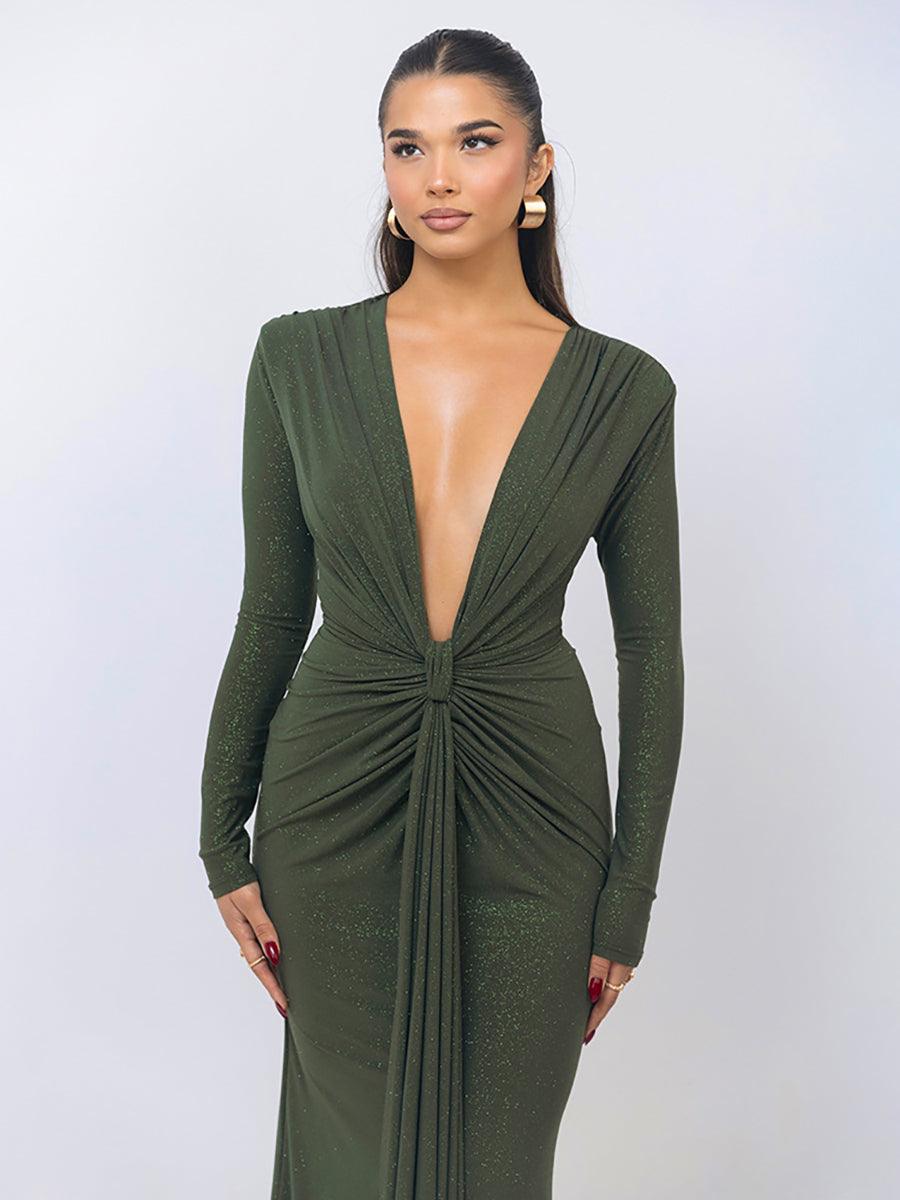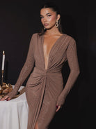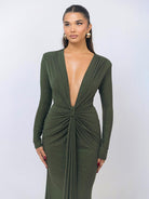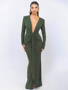 Get ready to plunge into your next formal event with this Long Sleeve Ruched Solid Prom Dress from MYC2022! The plunging neckline and ruched detailing add a touch of elegance to this fun and playful dress. Perfect for making a statement and standing out from the crowd.