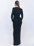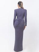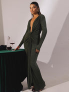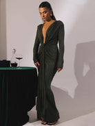 Plung Long Sleeve Ruched Solid Prom Dress MYC2022