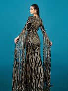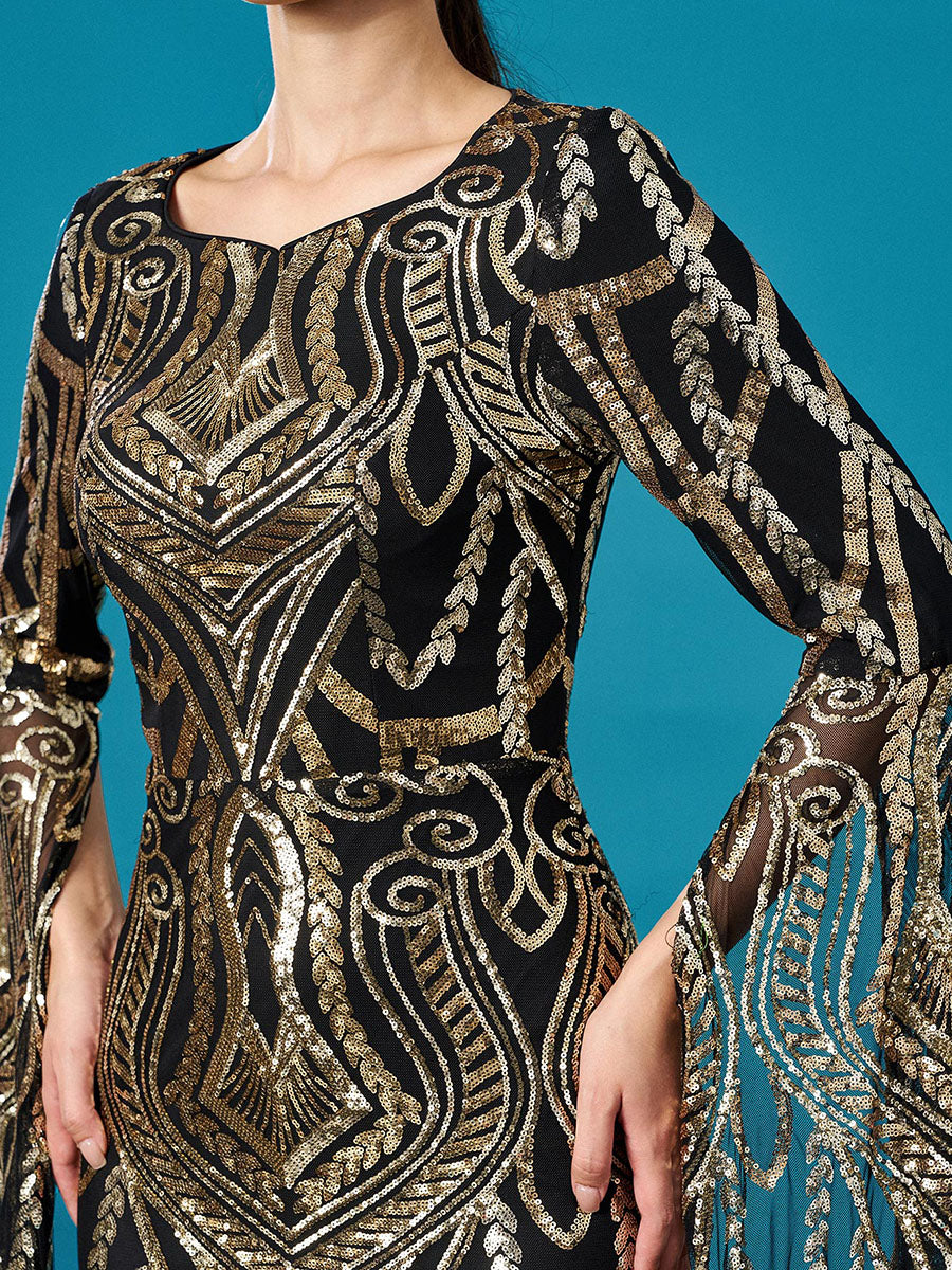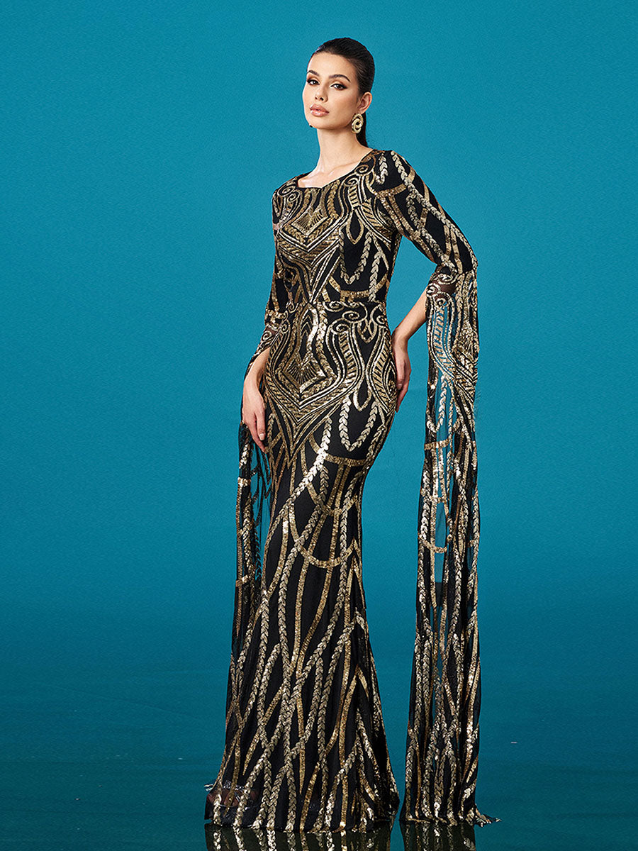 Luxury Geometric Sequin Long Sleeve Formal Dress DH80402