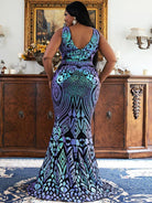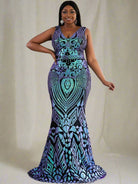Plus Zip Back Sequin Formal Dress P0364