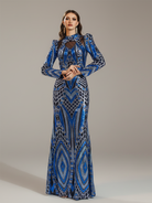 Blue Sequin Graphic Long Sleeve Prom Dress DH80462