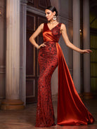 Elegant Drape Satin and Sequin Embellished Mermaid Evening Gown RJ12169